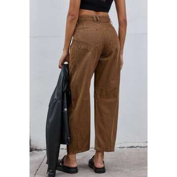 Show moreStep into style with the GREAIDEA Mid Rise Barrel Jeans for Women. Perfectly blending comfort and fashion, these baggy wide-leg jeans are crafted from robust non-stretch denim, echoing the classic vintage look many have come to adore. With their relaxed fit and tapered hem, they effortlessly elevate any outfit while providing that ultimate comfort you desire. Designed thoughtfully, these jeans are not just about looks; they ensure a fashionable silhouette that complements various body types, all while maintaining a focus on timeless style.