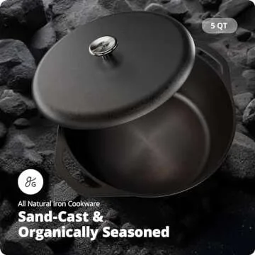 Show moreThe gG Cast Iron Dutch Oven is not just a cooking vessel; it's a culinary staple crafted for all who cherish the art of cooking. This pre-seasoned marvel boasts a coating of 100% organic flaxseed oil from Canada, ensuring that your meals are not only delicious but also healthy. Designed to serve various cooking methods, you can confidently use it on induction surfaces, gas stoves, electric coils, campfires, grills, or pop it in the oven. Imagine the thrill of slow-cooking stews or baking artisanal bread in a piece of cookware that provides even heat distribution thanks to its milled smooth interior.
