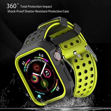 Show moreDiscover the perfect blend of style and protection with the Greatfine Compatible for Apple Watch Band 44mm/40mm with case. Designed specifically for Apple Watch Series 4 and Series 5, this accessory is more than just an ordinary watch band; it’s a shock-proof protective silicone case that ensures your device remains stylishly safe from everyday wear and tear. Available in a trendy black and yellow color combination, this band will not only upgrade your watch’s aesthetics but also safeguard it against bumps and scratches!