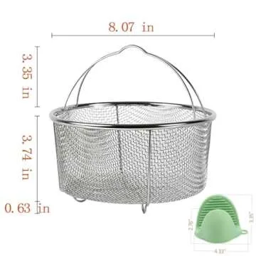 GREATLINK Mesh Steamer Basket, Stainless Steel Mesh Net Strainer Basket and Insert, Pressure Cookers and Pots,for Washing, Fry, Steam or Cook Fruits,Vegetables and Pastas (Free 2 Pcs silicone gloves)