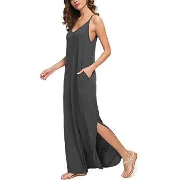 Show moreIntroducing the GRECERELLE Women's Summer Casual Plain Loose Beach Cover Up Long Maxi Dress in Dark Gray. This gorgeous dress is your go-to solution for effortless style during the warmer months. Crafted from a premium blend of 95% rayon and 5% spandex, this maxi dress offers an unbeatable combination of softness and stretch. It glides over your skin, providing ultimate comfort while ensuring a flattering fit. The beautiful dark gray hue serves as a versatile canvas for accessorization, while its unique design makes it perfect for any occasion—from casual outings to beach vacations.
