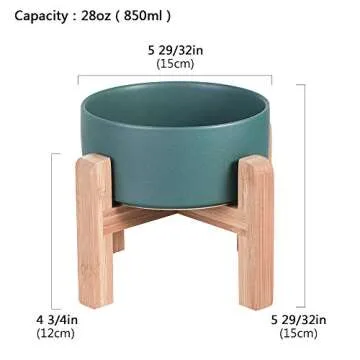Green Ceramic Elevated Raised Cat Bowl with Wood Stand No Spill Pet Food Water Feeder Cats Small Dogs