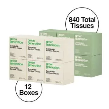 Green Generation Bamboo Facial Tissues - 3-Ply, 70 Sheets per Tissue Box, 12 Multicolor Boxes of Tissues, 840 Face Tissues - Hypoallergenic, Soft, Organic, FSC Certified, Tree Free