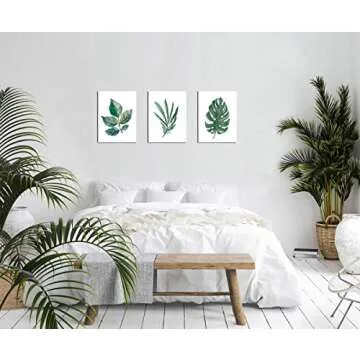 Green Leaf Wall Art Simple Life Leaves Canvas Pictures Watercolor Painting Prints Contemporary Canvas Artwork Ready to Hang for Bedroom Bathroom Living Room Wall Decor 12" x 16" x 3 Pieces