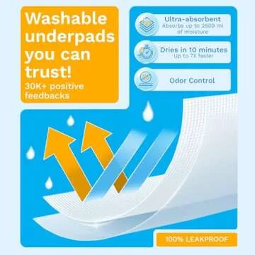 Introducing the GREEN LIFESTYLE Washable Underpads, an essential solution for anyone needing reliable protection against leaks and spills. Measuring 30 x 34 inches, these large, thick underpads are perfect for adults and seniors dealing with incontinence, as well as for potty training toddlers and children experiencing overnight accidents. They offer unbeatable absorbency and are versatile enough for use as reusable pet pads for dogs, cats, and even bunnies....