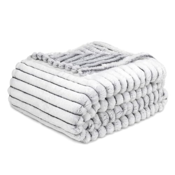GREEN ORANGE 50" x 60" Fleece Throw Blanket, Black & White Striped Color, Perfect Cozy Gift, Super Warm Comfy - ECO-Certified, Hypoallergenic - Soft, Lightweight Plush Throw for Women, Men & Kids