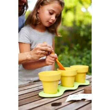 Includes three pots with peapod-shaped tray, trowel, three packs organic seeds of zinnia or basil or teddybear sunflower, and three soil discs