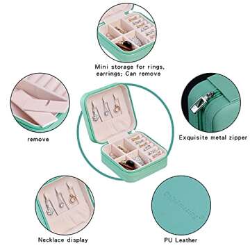 Green Travel Mini Organizer Portable Display Storage Case for Rings Earrings Necklace Valentines Day Gifts for Girls Women
