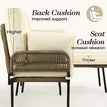 Show moreIntroducing the Green4ever Patio Furniture Set, a beautifully designed outdoor sectional that combines functionality with bohemian charm. This versatile and stylish set features a uniquely hand-woven wicker pattern in a neutral finish, perfect for enhancing the aesthetic of your patio, balcony, or garden. The L-shaped design invites you to indulge in relaxation, making it an ideal spot for sipping your morning coffee or enjoying an afternoon read. Crafted with a solid metal frame and topped with plush, weather-resistant cushions, this furniture set promises not only comfort but also durability, ensuring it withstands the elements while maintaining its stunning appearance.