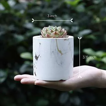 Greenaholics Succulent Plant Pots - 3 Inch Small Ceramic Cylindrical Planter Containers for Cactus or Flowers with Drainage Hole and Bamboo Tray - Marble Set of 3