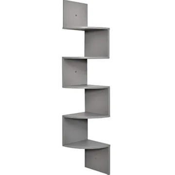 Greenco 5 Tier Corner Wall Shelves - Modern Gray Floating Decor
