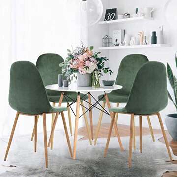 GreenForest Velvet Dining Chairs Set of 4,Dining Kitchen Room Chairs, Mid Century Modern Upholstered Side Chairs with Metal Legs,Dark Green
