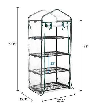 Greenhouse 4 Tier Mini Greenhouse 63x28x20 in Portable Garden Green House, with Zippered PVC Cover, Metal Shelves for Garden Yard Patio Indoor Outdoor, Extra Hooks Wind Ropes 8 Net Rack Buckles
