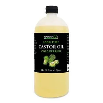 GreenIVe Castor Oil Organically Grown 100% Pure 32oz Bottle Cold Pressed, Hexane Free, Eyelash and Eyebrow Growth Serum, Skin Moisturizer Detox and Wraps
