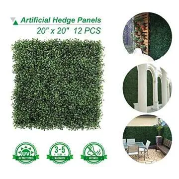 greenjoye Artificial Boxwood Hedge Topiary Panels UV Protected for Outdoor Decoration,20 x 20 Inches 12Pcs (Dark Green)