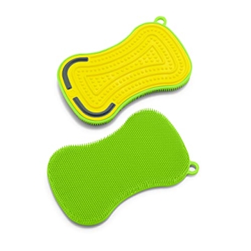 GreenLife Reusable Multipurpose Silicone 2 Pack Sponge and Scrubber, Hygienic and Odor Resistant Dish Washing, Scratch Free Cleaning, Dishwasher and Microwave Safe, BPA Free, Green and Yellow