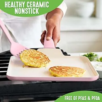 GreenLife Soft Grip Healthy Ceramic Nonstick, 11" Griddle Pan, PFAS-Free, Dishwasher Safe, Soft Pink