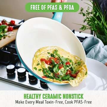 GreenLife Soft Grip Healthy Ceramic Nonstick 16 Piece Kitchen Cookware Pots and Frying Sauce Saute Pans Set, PFAS-Free with Kitchen Utensils and Lid, Dishwasher Safe, Caribbean Blue