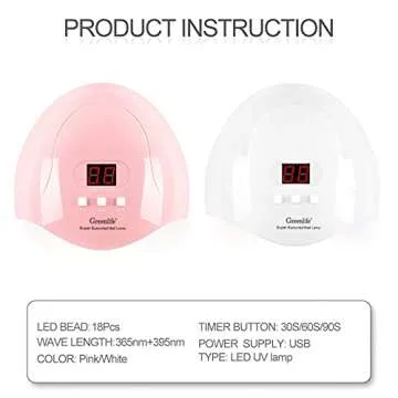 Show more Introducing the revolutionary GreenLife 54W UV LED Nail Lamp, your ultimate solution for achieving salon-quality nails at home! This state-of-the-art nail lamp features 18 powerful LED beads that can cure most gel nail polishes in record time—just 30 to 60 seconds! With its fast curing technology, you can finally say goodbye to long waits and hello to stunning, smooth, and mirror-finish nails. Say goodbye to the inconvenience of traditional drying methods and embrace the future of nail care with this compact device.