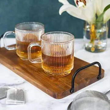 Greenline Goods Ribbed Ripple Art Deco Glassware Mugs Set of 2-12 oz Origami Style Glass Cups - Aesthetic Drinking Glasses - Retro Unique Fluted Vintage Glasses For Coffee, Tea, or Modern Bar