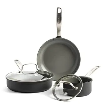 GreenPan Chatham Hard Anodized Healthy Ceramic Nonstick 5 Piece Cookware Pots and Pans Set, Saute, Saucepan, Lids, Stainless Steel Handles, PFAS-Free, Dishwasher Safe, Oven Safe, Gray
