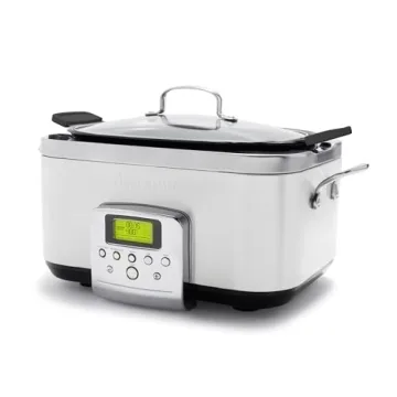 Show more Introducing the GreenPan Elite 8-in-1 Programmable 6-Quart Electric Slow Cooker, your ultimate kitchen companion that perfectly balances functionality and elegance. Crafted with a revolutionary ceramic nonstick coating, this innovative slow cooker is free from harmful chemicals such as PFAS and PFOA, ensuring that you and your family can enjoy worry-free cooking. Its robust design not only withstands the rigors of everyday use but also elevates your culinary experience by contributing to healthier meal preparation.