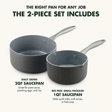 Show moreDiscover the ultimate cooking experience with the GreenPan Lima Hard Anodized Healthy Ceramic Nonstick Saucepan Set. This meticulously designed set includes a 1QT and a 2QT saucepan, perfect for all your culinary needs. Featuring Thermolon healthy ceramic nonstick coating, this cookware is not only efficient but also environmentally friendly, being free from PFAS, PFOA, lead, and cadmium. You can cook confidently knowing that even if the saucepans get overheated, they won't release any toxic fumes, ensuring your kitchen remains safe.