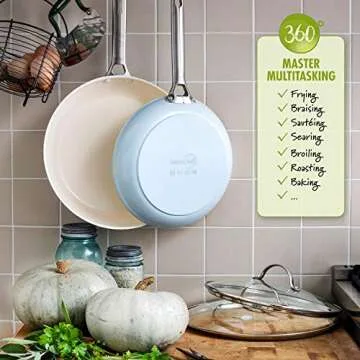 What sets the GreenPan Padova apart is its unique infusion of diamonds into the ceramic coating, providing incredible durability that withstands the rigors of daily cooking. The hard anodized aluminum construction ensures that the frying pans are unbelievably strong, scratch-resistant, and able to withstand the high temperatures essential for searing meats and sautéing vegetables. With oven and broiler safety up to an impressive 600°F, these skillets are versatile enough for various cooking techniques, whether you're finishing a dish in the oven or broiling for a crispy top.