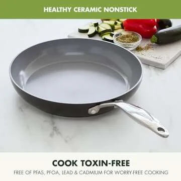 Show moreIntroducing the GreenPan Valencia Pro 12" Skillet, the perfect blend of culinary innovation and health-conscious design. This remarkable frying pan incorporates cutting-edge ceramic nonstick technology infused with diamond particles, ensuring not only superior durability but also fantastic heat distribution for flawless cooking every time. Awarded by America's Test Kitchen and recognized with the prestigious 2023 Good Housekeeping Sustainable Innovation Award, this skillet elevates your cooking experience to new heights.