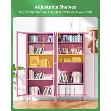 Greenvelly Tall Curio Bookcase with Tempered Glass Doors and Shelves for Home Bedroom and Living Room