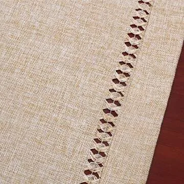 Constructed from 100% durable polyester, this fabric is robust and not thin, making it an ideal choice for both formal and casual dining settings. The thoughtful design minimizes wrinkling, and hand washing is preferred to maintain its pristine condition, with a slight iron necessary to keep it looking sharp. This product has received glowing reviews from users who appreciate its perfect weight and design, making it suitable for dressers or tables.