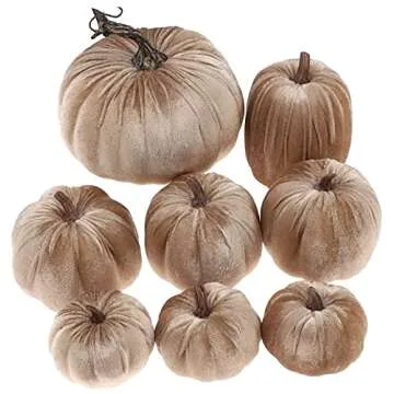 Gresorth 8pcs Assorted Size Fake Handmade Champagne Velvet Pumpkins Artificial Fall Harvest Halloween Decoration for Home Kitchen Farmhouse Thanksgiving Wedding Festival