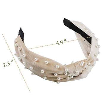 Greuame 3 Pack Wide Top Knot Pearls Headband with Elastic Hoop, Turban Hairband Velvet Hair Hoop Suitable for Women and Girls (Black/Beige/Gray)