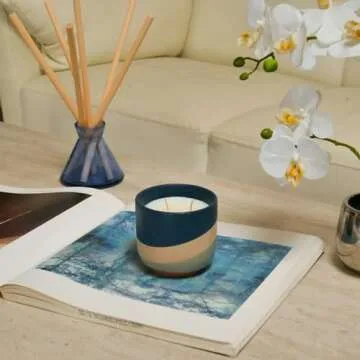 Grey and Navy Blue Geometric Striped Ceramic Round Vase - 4 x 4 x 3.5 Inches - Accent Decor Colorway Collection Modern Pot for Home Accents and Office Decor