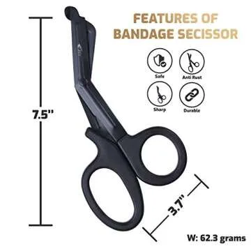 GREY Medical Trauma Shears 7.5", Black Non-Stick Blades, First Aid Nursing Safety Bandage Scissors… (1, Full Black)