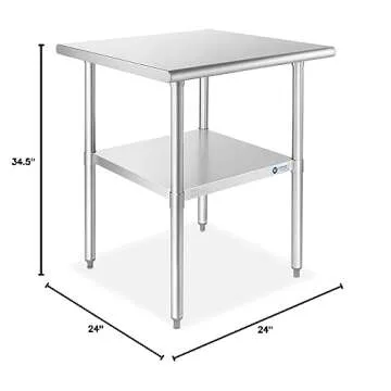 Show moreThe GRIDMANN Stainless Steel Work Table is the ultimate solution for anyone seeking a durable and versatile workspace. Crafted from robust 18-gauge #430 stainless steel, this 24" x 24" table provides a solid surface that is perfect for both commercial and industrial applications. Whether you're operating a busy restaurant kitchen or organizing your garage, the GRIDMANN work table stands up to the demands with ease. At a comfortable height of 34-1/2 inches, this table is designed with rounded edges that maximize comfort while working, making it a must-have for any culinary or DIY enthusiast.