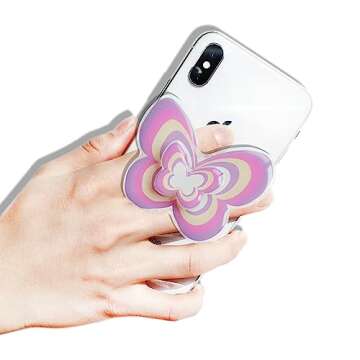 GRIPONG Cute Swappable Expandable and Spinnable Mobile Phone Grip Stand for Phones and Tablets - Acrylic Spinner Accessory (Purple Butterfly Spinner)