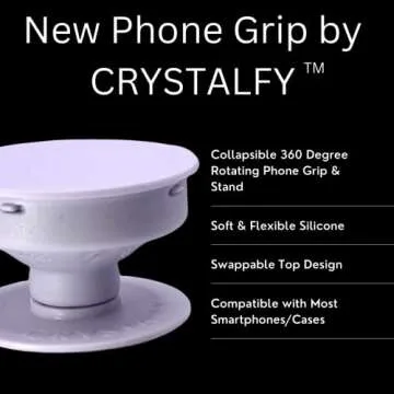 Grips by CRYSTALFY Labradorite Gold Edge Crystal Phone Grip Holder & Expanding Kickstand - Natural Gemstone Swappable Top Accessory for iPhone, iPad, Kindle & Mobile Devices
