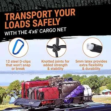 Grit Performance Cargo Net for Pickup Truck Bed - 4 x 6 Foot, Heavy-Duty, Mesh Square Bungee Netting with 12 Blue Clips and Storage Bag - Holds Small and Large Loads