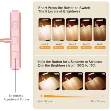 Gritin 19 LED Rechargeable Book Light for Reading in Bed with Memory Function- Eye Caring 3 Color Temperatures,Stepless Dimming Brightness,80 Hrs Runtime Clip on Light for Book Lovers-Pink