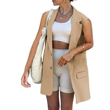 Show more If you're searching for a stylish yet sophisticated addition to your wardrobe, look no further than this exceptional sleeveless blazer jacket for women. Made from a comfortable and breathable blend of materials including 58% Polyester, 36% Viscose, and 6% Spandex, this jacket is designed for ultimate wearability. The full lining adds an extra layer of comfort, ensuring that you stay pleasantly cozy throughout the day. Whether you're heading to the office or out for a night on the town, this versatile piece will elevate any outfit.