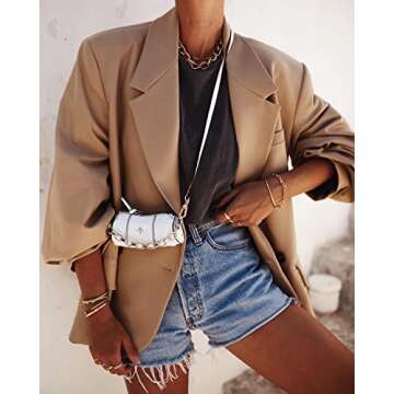 Unlike other blazers on the market that fall short in comfort and style balance, the Grlasen blazer stands out for its unique batwing silhouette that flatters various body types. Many competitors offer rigid and structured blazers that tend to restrict movement. In contrast, this blazer's fabric allows for a comfortable, unrestricted fit while still looking polished. Additionally, the khaki color provides a versatility that is often lacking in typical black or navy blazers.
