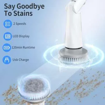 GROMCLIP Electric Spin Scrubber, Electric Shower Scrubber with Long Handle Adjustable, 8 Replaceable Heads and Battery Display, 2 Speeds Electric Spin Brush for Cleaning Bathroom Tub Floor Tile Basin