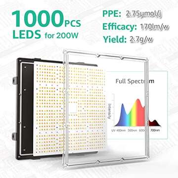 GROPLANNER LED Grow Light 200 Watts 1000 LEDs Seed Starting, Veg and Flower Plant Growing Light for Licensed Growers