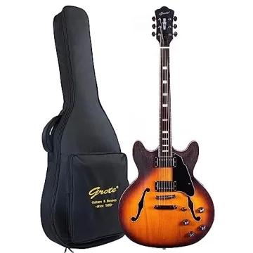 Show moreIf you're searching for a remarkable gift for a music lover or an aspiring guitarist, look no further than the Grote Electric Guitar Matte Finished Mahogany Semi-hollow Body with Gigbag GT335-009 (VS). This vintage-inspired masterpiece is crafted with precision and an eye for detail, embodying a stunning 335-style design that delivers a classic tone while exuding elegance with its high-quality mahogany body and beautiful maple veneer finish. Designed for both aesthetics and performance, the guitar features a rosewood fingerboard paired with 22 stainless steel frets to ensure a smooth and enjoyable playing experience—ideal for both beginners and seasoned musicians alike.