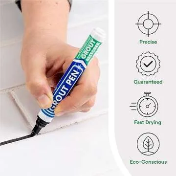 Show more Revitalize the look of your home with the Grout Pen, a revolutionary tool designed to paint and recolor grout with ease. No more scrubbing tirelessly or replacing old grout! This innovative product offers a simple solution for restoring the bright, clean appearance of your tiles, making it an essential addition to your DIY toolkit. Ideal for both small and large projects, the Grout Pen covers up to 150 feet of thin 2mm grout, allowing you to tackle everything from minor touch-ups to extensive renovations.