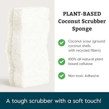 Grove Co. Sponges, Natural Coconut Scrubber Kitchen Sponge, Dual-Sided, Non-Scratch, Super Absorbent Plant-Based Cellulose with Coconut Husk Scourer, Household Cleaning Essentials, 6 Pack
