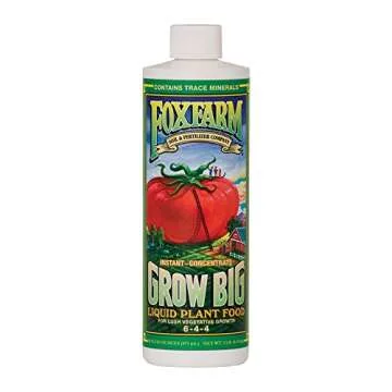 Show moreUnleash the full potential of your garden with Grow Big liquid concentrate fertilizer from FoxFarm. This exceptional product is formulated to promote lush vegetative growth, creating an oasis of thriving plants that bear abundant fruit and stunning flowers. Packed with nature's best, Grow Big boasts a unique blend of earthworm castings, Norwegian kelp, and essential micronutrients that work synergistically to enhance plant size and structure. With a balanced nutrient ratio of 6% nitrogen, 4% phosphorus, and 4% potassium, this fertilizer provides everything your plants need for optimal growth.