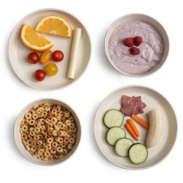 Grow Forward Bamboo Kids Plates and Bowls Set - 4 Bamboo Plates for Kids and 4 Bamboo Bowls for Kids - BPA Free & Dishwasher Safe - Eco Friendly and Reusable Childrens Dishes - Arctic