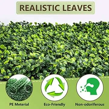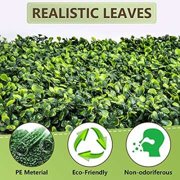 Show moreTransform your indoor and outdoor spaces into lush, tranquil retreats with the Growalnut 12 Pieces Boxwood Hedge Wall Panels. Perfect for creating a greenery backdrop, these artificial plant panels measure 20" x 20" each and come in a convenient set of twelve. Designed with longevity in mind, the UV protection ensures that the vibrant greens will not fade, allowing for year-round visual appeal without the hassle of maintenance. Whether you aim to enhance your home office aesthetics or create a cozy outdoor patio ambiance, these panels offer versatility and style in every installation.